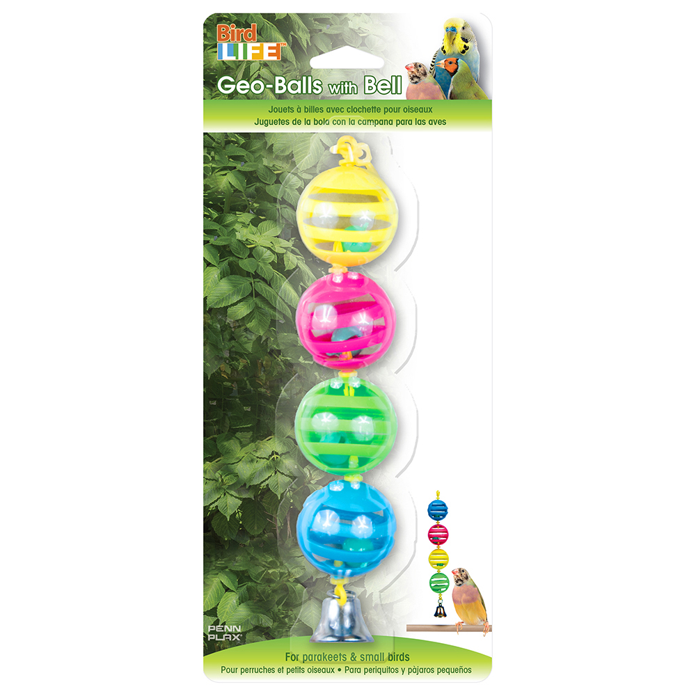 Enhance your bird's well-being and mental stimulation with the Penn Plax Geo Balls with Bell. These durable and colorful toys are perfect for encouraging physical activity and mental engagement in your feathered friend.