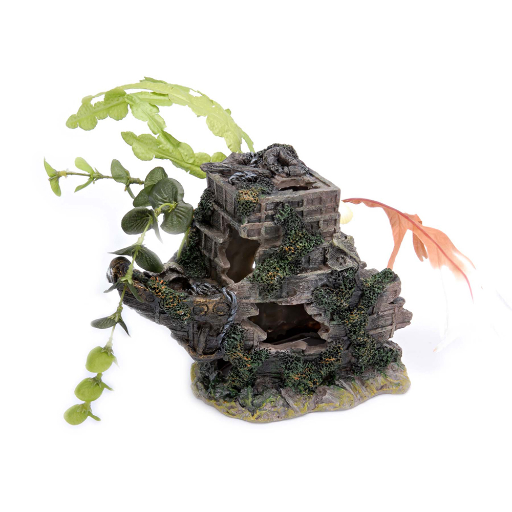 Tide & Treasure™ Shipwreck Stern Aquarium Ornament with Silk Look Plants - Medium - 7" L x 5" W x 8" H